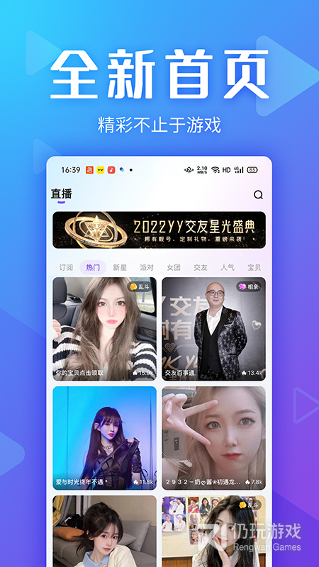 Yo交友拥有语音交友聚集地。全中丰富了语音房玩法,还有集合好看的皮囊和有趣的灵魂的多人音视频房间,满足更优质的游戏开黑、扩列聊天、交朋友、处cp等多样的社交需求。一起来玩嗨翻天!
