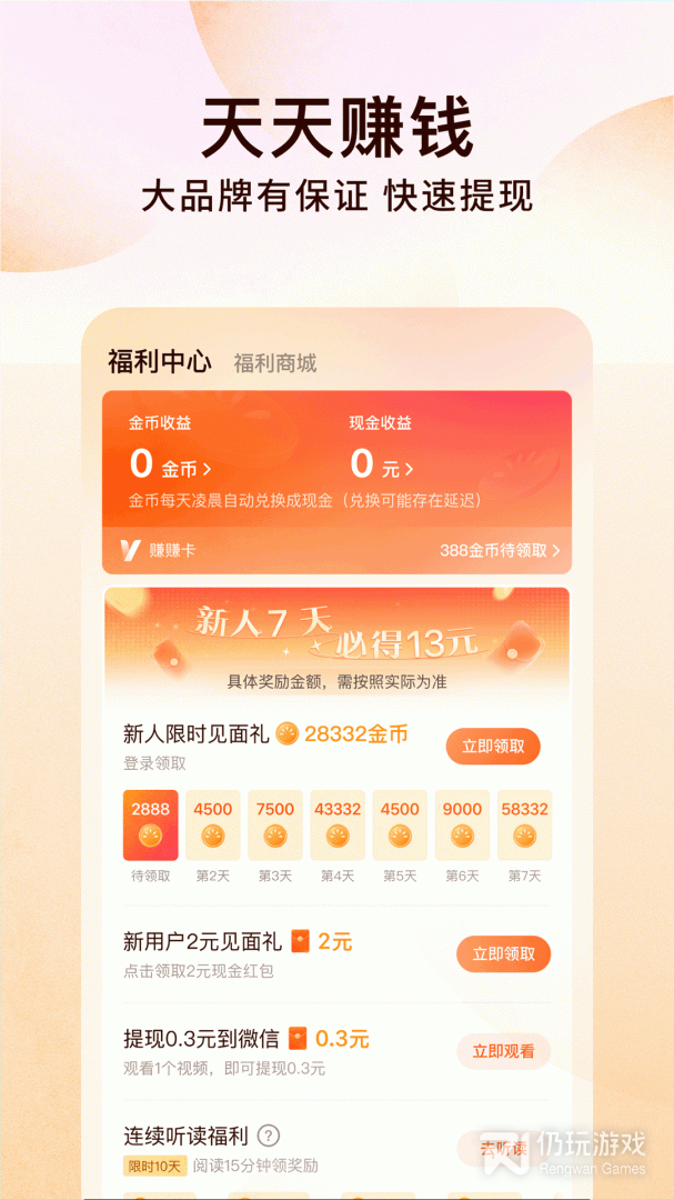 签到福利,金币福利,阅读福利……各种福利应有尽有,随时提现,只要你每天常来读!