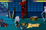 玩家与敌人战斗时可以像大多街机横版动作游戏那样,一边按住下键一边攻击使用投技,干掉敌人或破坏场景会掉出用来补血的食物和各种光球,比较恶意的是这些光球并不是清一色的power up之类的正面效果,也会经常掺杂一些反向,减速,锁住攻击之类的debuff。