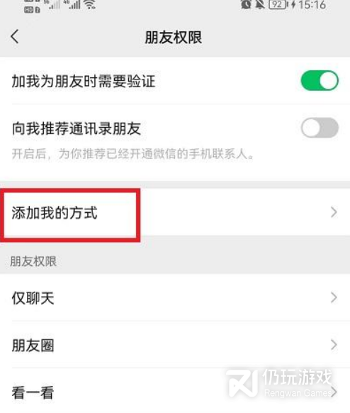 3.在朋友权限中,找到【添加我的方式】进入其中;