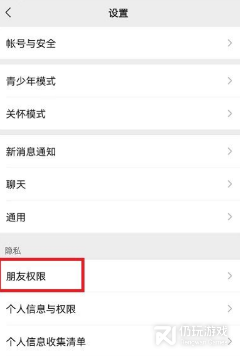 2.接着在设置功能中,打开其中的【朋友权限】
